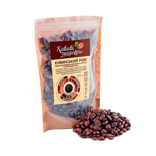 каву Кавові Шедеврі Кубинський Ром у зернах 500 г . Таку каву можна вигідно купити в інтернет-магазині coffeeok. Він поєднує в собі вишуканий бленд 100% арабіки середньої обсмажування та ароматизатора Кубинський ром, який залишає приємний солодовий післясмак. Оригінальне поєднання чудово бадьорить, піднімає настрій. Воно сподобається навіть найвибагливішому кавоманові. Приготувати смачну каву можна різними способами: у кавомашині, турці, гейзерній кавоварці і навіть заварити в чашці. Вибирайте оптимальний варіант та насолоджуйтесь улюбленим напоєм разом із близькими людьми!