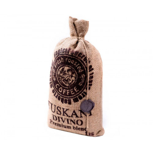 Кава TUSKANI 60%40% Divino в зернах 1 кг доступна до замовлення онлайн на сайті coffeeok у джутовому мішечку. Така упаковка відмінно зберігає всі смакові та ароматичні властивості зерен. Готувати зернову каву можна по-різному, наприклад, в автоматичній кавомашині. А після попереднього помелу – у гейзерній кавоварці, турці чи просто у чашці.