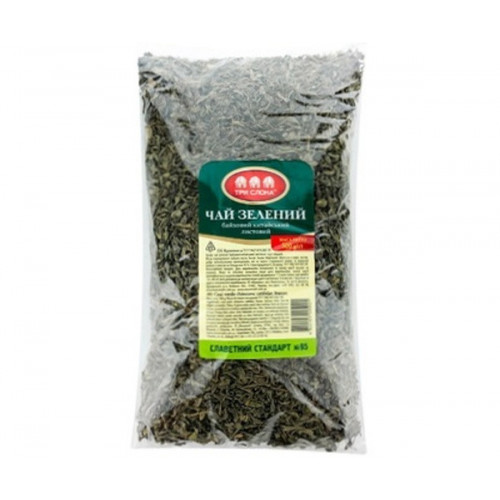 Усередині прозорого пакета з логотипом Три Слона знаходиться півкілограма класичного зеленого чаю з Китаю без добавок. Смак у готового трав'янистого напою, в ньому можна відчути легкі квіткові ноти. Аромат чайний, дуже ніжний та тонкий, здатний довго висіти у повітрі, створюючи особливу атмосферу. Зелений чай Три Слона належить українському виробнику, тому суміш зібрана з урахуванням смаків вітчизняних шанувальників бренду. Такий напій добре розслаблює, допомагає зняти втому та напругу. Найкраще його пити після робочого дня, але й зранку він позитивно вплине, налаштувавши думки на правильний лад. Заварювати китайський чай можна як у чашці, так і в чайнику.