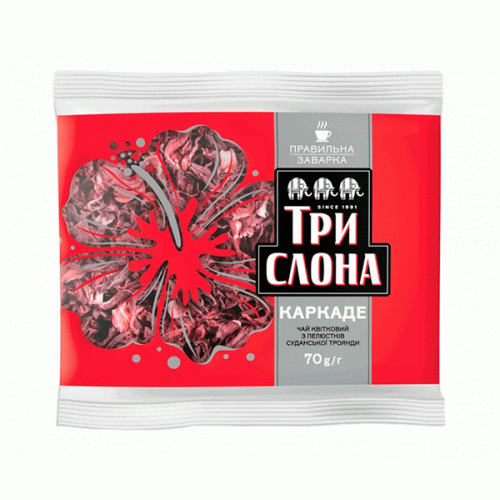 Багато хто чув про користь чаю з каркаді. Такий напій впливає на артеріальний тиск, добре бадьорить, а ще він має величезну кількість корисних для здоров'я мікроелементів та вітамінів. Все це ви знайдете у квітковому чаї Три Слона Каркаде. Суміш поставляється у невеликому пакеті, який стане ідеальним способом знайомства з таким оригінальним напоєм. У чаю Каркаде смакує характерна кислинка, тому він чудово освіжає в теплу пору року. Додайте в чашку трохи цукру, і відчуття від напою відразу зміняться. Три Слона Каркаде може також похвалитися глибоким фруктовим запахом, який швидко поширюється кімнатою, як тільки ви починаєте заливати суміш окропом.
