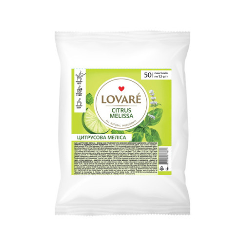 Опис Зеленый чай Lovare Цитрус Мелисса в пакетиках 50 шт (повреждена упаковка)