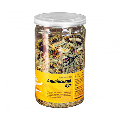 Ароматний трав'яний чай Tea Genius Альпійський луг створений спеціально, щоб через напій передати вам спокій та красу гірських лугів. Суміш має традиційний склад. Лимонна трава та каркаде відповідають за кислу основу смаку. Шипшина та ромашка надають терпкості. А цедра апельсина є яскравим акцентом. Настій виходить характерного жовто-зеленого відтінку з вираженим ароматом різнотрав'я. Трав'яний чай Tea Genius Альпійський лук українського виробництва упакований у банку з герметичною кришкою. Ви можете не пересипати суміш і бути на 100% впевненими у збереженні аромату трав. Виробник рекомендує використовувати 4-5 чайних ложок бленду Ті Джініус Альпійський луг на 1 літр води. Залийте суміш гарячою водою та зачекайте 3-5 хвилин.