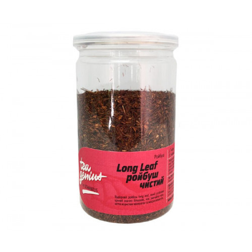 трав'яний чай Tea Genius Ройбуш 100 г у прозорій пластиковій баночці із щільною кришкою. Така тара надійно збереже всі смакові та ароматичні властивості чайного листа. Трав'яний чай ройбуш має багато корисних властивостей: він багатий на антиоксиданти, у його складі відсутній кофеїн. Напій відмінно тонізує та вгамовує спрагу. Його можна пити і гарячим і холодним. Справжній африканський чай ройбуш немає добавок. Заваривши чашечку такого напою, ви зможете сповна насолодитися його трав'яним ароматом та природним солодкуватим смаком. Чай швидко заварюється. Для його наполягання потрібно не більше 5-6 хвилин.