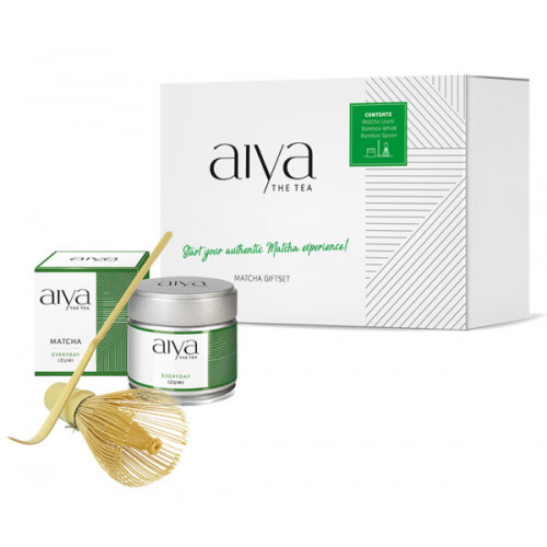 Чудовий подарунковий набір Aiya точно порадує любителів чаю матчу. Висока якість, стильна упаковка та виключно органічний продукт, який зарядить Вас бадьорістю на цілий день. В набір входять: - чай матчу Izumi (30 г) - спеціальний бамбуковий віночок (Chasen) - бамбукова ложка (Chashaku) Izumi - це найкращий варіант чаю для новачків. Його також використовують у кулінарії. Віночок виготовлений вручну, зубці вирізані з одного бамбукового стебла, а потім завиті у необхідну форму. Такі бамбукові ложки вже багато століть використовуються для ідеального заходу матчу. Для приготування легшого чаю (Usucha) достатньо використовувати дві ложечки, для насиченої версії матчу (Koicha) – чотири. Приємного чаювання.
