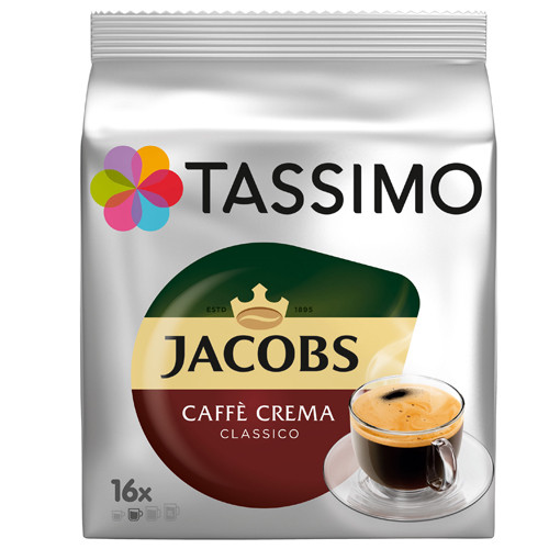 Jacobs Caffe Crema Classico – спресована мелена арабіка у герметичних капсулах, призначених для кофемашин стандарту Tassimo. Внаслідок високого тиску, під яким вода проходить через каву, утворюється оксамитова золотиста пінка з шоколадним присмаком. Нотки цитрусових доповнюють смаковий спектр приємною добре відчутною кислинкою. Капсульна форма – вибір у користь практичності, а й тривалості зберігання. Герметична тара дозволяє «закупорити» оригінальні властивості кави до моменту використання. Jacobs Caffe Crema Classico розрахований на 16 порцій обсягу М, тобто. 150мл.