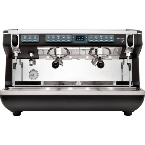 Традиційна автоматична кавомашина Nuova Simonelli Appia Life XT 2GR V з прямим підключенням до системи водопостачання призначена для приготування кави еспресо і капучино. Оснащена двома високими термокомпенсованими групами, краном для подачі гарячої води та двома паровими кранами з нержавіючої сталі із системою Push&Pull. Здійснює автоматичну подачу гарячої води, кави та пари. Бойлер виготовлений із міді з теплоізоляцією Drytex Thermal, що дозволяє суттєво знизити витрати на електроенергію. Основа та бічні панелі виконані з ABS-пластику, задня панель із вставкою зі сталі, робоча поверхня – з нержавіючої сталі.