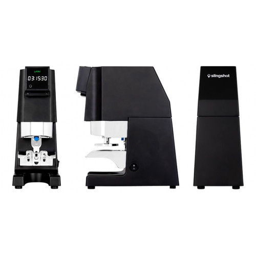 Slingshot Kilo — самий швидкий автоматичний темпер на ринку. В залежності від налаштувань, пресування займає від 0,8 до 1,4 с. Призначений для закладів, які цінують швидкість, стабільність і ефективність. Сила натиску задається в широкому діапазоні 3 — 30 кг і контролюється запетентованою системою з вагами. Одночасно зберігає 3 профілі, в яких задаються кількість стискань і їх інтенсивність. Темпер має увігнуту форму і обертається під час притиску, що забезпечує рівномірну щільність кави. Також відзначимо простоту обслуговування і чищення.