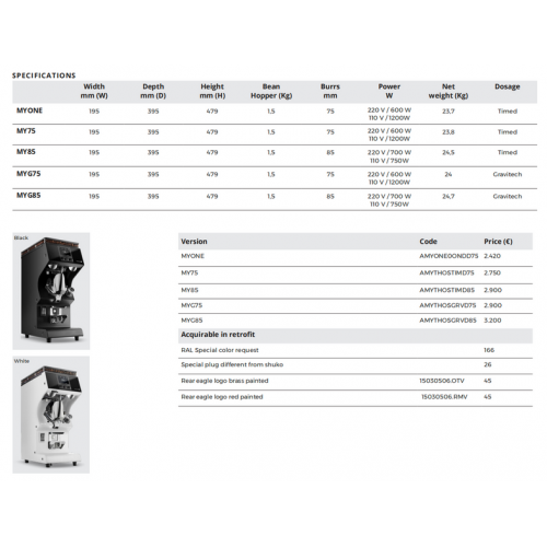 Сьогодні Mythos, посилений цінностями Victoria Arduino, підтверджує себе як кавомолка, здатна знову досягти досконалості помелу зі значними покращеннями з погляду користувальницького досвіду, контролю помелу та дизайну.