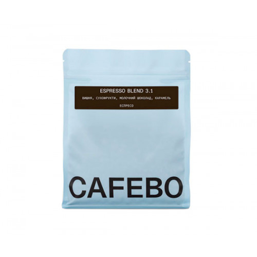 У 250-грамовому пакетику CafeBoutique Espresso Blend 3.1 міститься кава з Бразилії, Ефіопії та Індії. Ця суміш здатна порадувати любителів фруктових, шоколадних та карамельних смаків. Напій виходить із відмінним балансом кислоти та гіркоти. Такий еспресо добре підбадьорить зранку і зарядить енергією. Кава виконана в середній обсмажуванні, що допомогло максимально розкрити смакові та ароматичні властивості. Espresso Blend 3.1 підходить для приготування у будь-яких кофемашинах.
