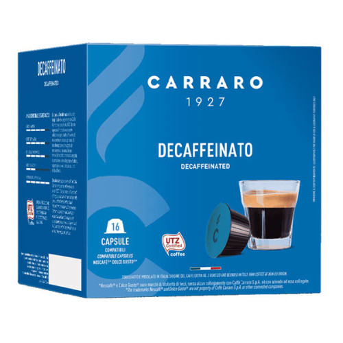 Один із найкращих напоїв без кофеїну — кава в капсулах Carraro Decaffeinato Dolce Gusto з Італії. Еспресо з фруктовим ароматом, повним оксамитовим смаком і стійкою крему створений таким чином, щоб кожен міг насолоджуватися чашкою кави протягом усього дня. Для приготування напою просто покладіть контейнер у кавоварку Dolce Gusto натисніть одну кнопку і через пару хвилин кави готовий. Кава в капсулах Каррао Декаффінато Дольче Густо - це результат наполегливої праці з 1927 року. Для того щоб ви могли насолоджуватися насиченим еспресо без кофеїну, співробітники бренду безперервно досліджують процеси екстракції кофеїну із зерен та відбирають найкращі зелені ягоди. Інноваційні виробничі процеси допомагають зберегти смак та аромат напою.