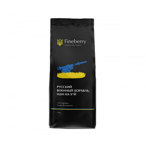Ця кава претендує стати такою ж легендарною, як і фраза, якою вона названа — російський військовий корабель іди на х*й! Усередині упаковки ви знайдете мелену каву зі 100% арабіки. Кавові ягоди були зібрані на плантаціях Конго та Ефіопії. Арабіку обсмажують до темної міри. Готовий напій має яскравий смак і чудово бадьорить. Кава Fineberry Russian Warship GFY сподобається всім, хто віддає перевагу еспресо з яскравим смаком, а також любителям напоїв із молоком.
