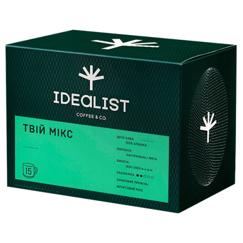 У вас немає кавомашини, але є бажання пити смачну каву вдома чи в офісі? Тоді зверніть увагу на Дріп-каву Idealist Coffee Co Твій мікс! У коробочці ви знайдете 15 упаковок кави у дріпах = 15 порцій ароматної кави!