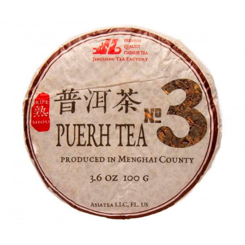 Шу Пуер Jing Long №3 – традиційний китайський темний пуер. №3 на упаковці означає, що для цього чаю використовувався лише один сорт пупер розсипного чаю — третій. Для нього беруть перший і другий лист із чайного куща. Завдяки досить дрібному і молодому листку, цей чай здивує вас глибоким чистим кольором настою і м'яким пряним смаком з ледве вловимою гіркуватістю.