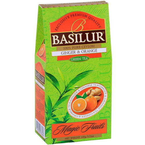 Опис Зелений чай Basilur Імбир та Апельсин картон 100 г