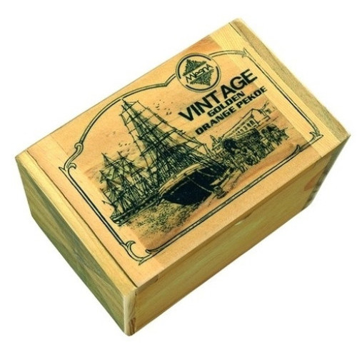 Вінтедж Голден у дерев'яній коробці від всесвітньо відомої компанії Млісна. Яка використовує тільки натуральні ароматизатори, такі як: олії екзотичні спеції витяжки з ягід і фруктів і т.д. Чайні листочки збираються виключно рано-вранці, з першою росою. Тоді коли чайна поки що перетворюється на молодий чайний лист. Містять високу концентрацію ароматизованих олій. При заварюванні дає дуже ароматний напій якому властива оксамитовість.