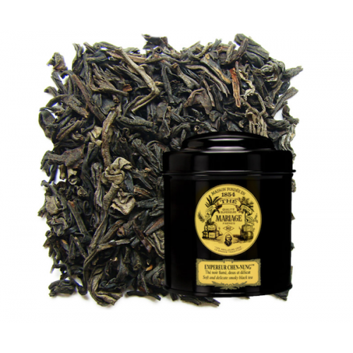 Чорний копчений чай від французького чайного будинку Mariage Freres Empereur Chen Nung Цей величний купаж названий на честь китайського імператора, який відкрив чай у 2737 році до нашої ери. Має тонкий аромат і ніжний, злегка димний смак. Ідеальний компаньйон для ситного та несолодкого сніданку. Заварювати при температурі 95 ° C - 4 хвилини.