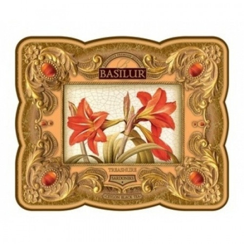 У вишуканій скриньці Ви знайдете цейлонський чорний чай Basilur з колекції Ларец Агат. Яскраво-виражений смак був створений завдяки додатку квітів волошки та сафлорак доповнення букет відображає чудовий аромат цитрусових, ананасу та апельсину. Чудовий трохи кислуватий смак і ніжний післясмак додадуть Вашому чаюванню нотку романтики з кожним ковтком Ваші емоції залишатимуться на позитивній ноті. Приголомшлива бляшанка не залишить байдужим ні кого. Витончена в той же момент яскрава вона відмінно збереже смакові якості і прикрашатиме інтер'єр кімнати. Гарний вибір у вигляді презенту дорогим та близьким людям.