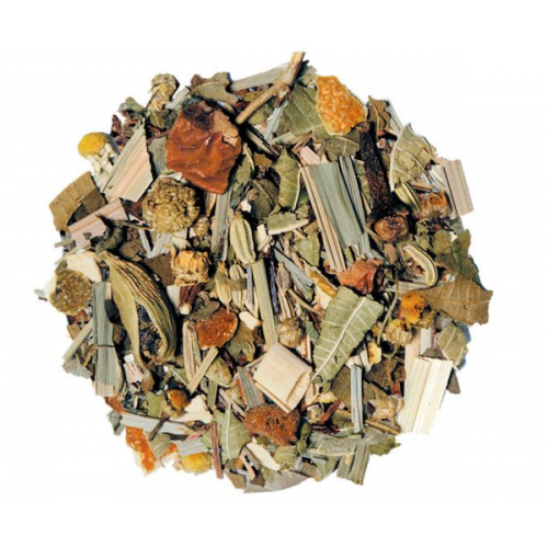 Домішки вербена, гвоздика, кардамон, кориця, лемонграс, ромашка, смородина, фенхель, цедра апельсина, яблуко