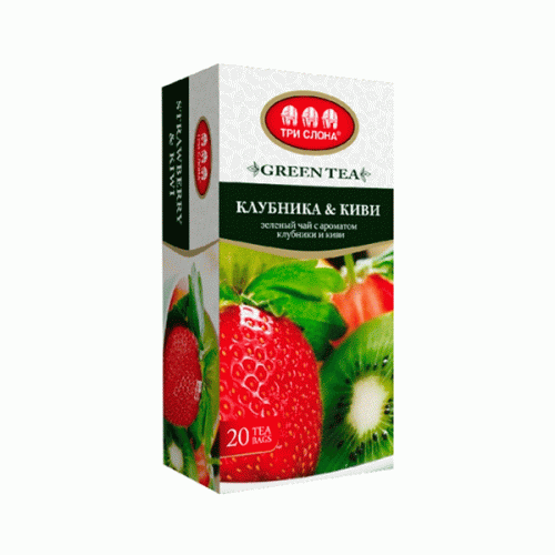Опис Зелений чай Три Слона Полуниця Ківі в пакетиках 20 шт
