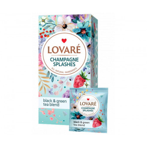 • Купаж чорного та зеленого чаю Lovare Бризки Шампанського в пакетиках 24 шт