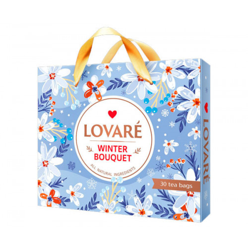 Lovare Букет - це колекція чаю з 6-ма різними смаками в неймовірно ніжній та святковій упаковці. Перше, на що важливо звернути увагу, - це оригінальний квітковий дизайн упаковки з елегантними ручками-стрічками. Друге, не менш важливе – це наповнення. Усередині кожної коробки лежать 6 популярних пакетиків чаю від компанії Ловар, по 5 шт. кожного. А саме: