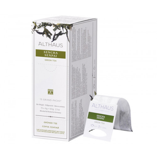 Althaus Sencha Senpai – крупнолистовий зелений чай японського походження. Проходить унікальну обробку, під час якої чайні листочки якийсь час просочують пором. При заварюванні формує настій жовто-зеленого кольору, в міру терпкий і трохи гострий. Аромат напою – обволікаючий та легкий, з виразними нотками деревини та свіжих трав. Сенча відрізняється приємною в'язкістю і добре поєднується з японською кухнею. Зелений Althaus Sencha Senpai рекомендують заварювати у порцеляновому посуді: температура води не повинна перевищувати 80˚С, а час – 5-7 хвилин. Такий чай багатий на вітаміни та антиоксиданти, а тому добре знімає втому, тонізує і м'яко очищає організм від токсинів.