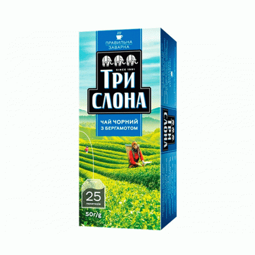 • Чорний чай Три Слона з бергамотом у пакетиках 25 шт